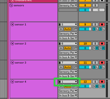 So if your V2 sensors are plugged into the first 3 sensor inputs of the Portal, and your V1 sensor is plugged into Mic/Line A, then your sensor input routing should look like this: