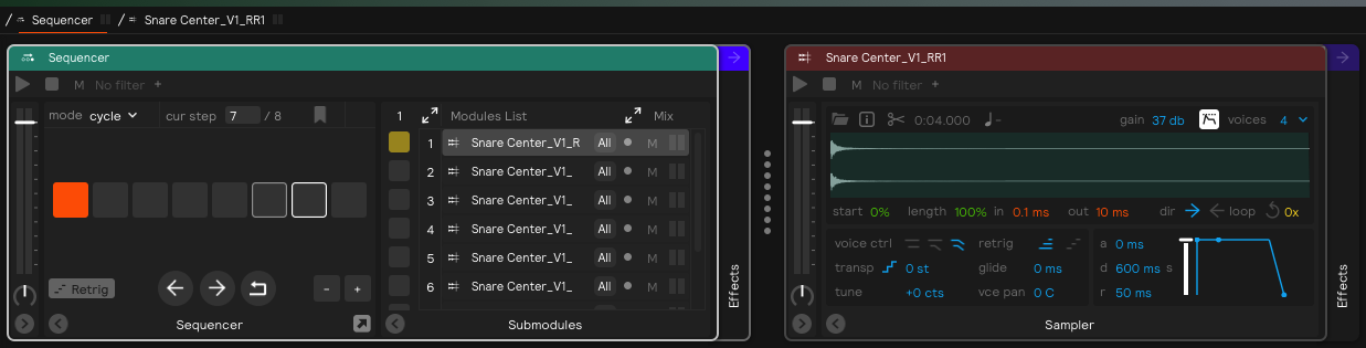 I got the multisampled snare working now, but I still get the edge samples louder than anything else, I wish the samples weren’t normalized by sensory and just imported as is and played with the volume they were recorded. The samples are really loud at 46 db!