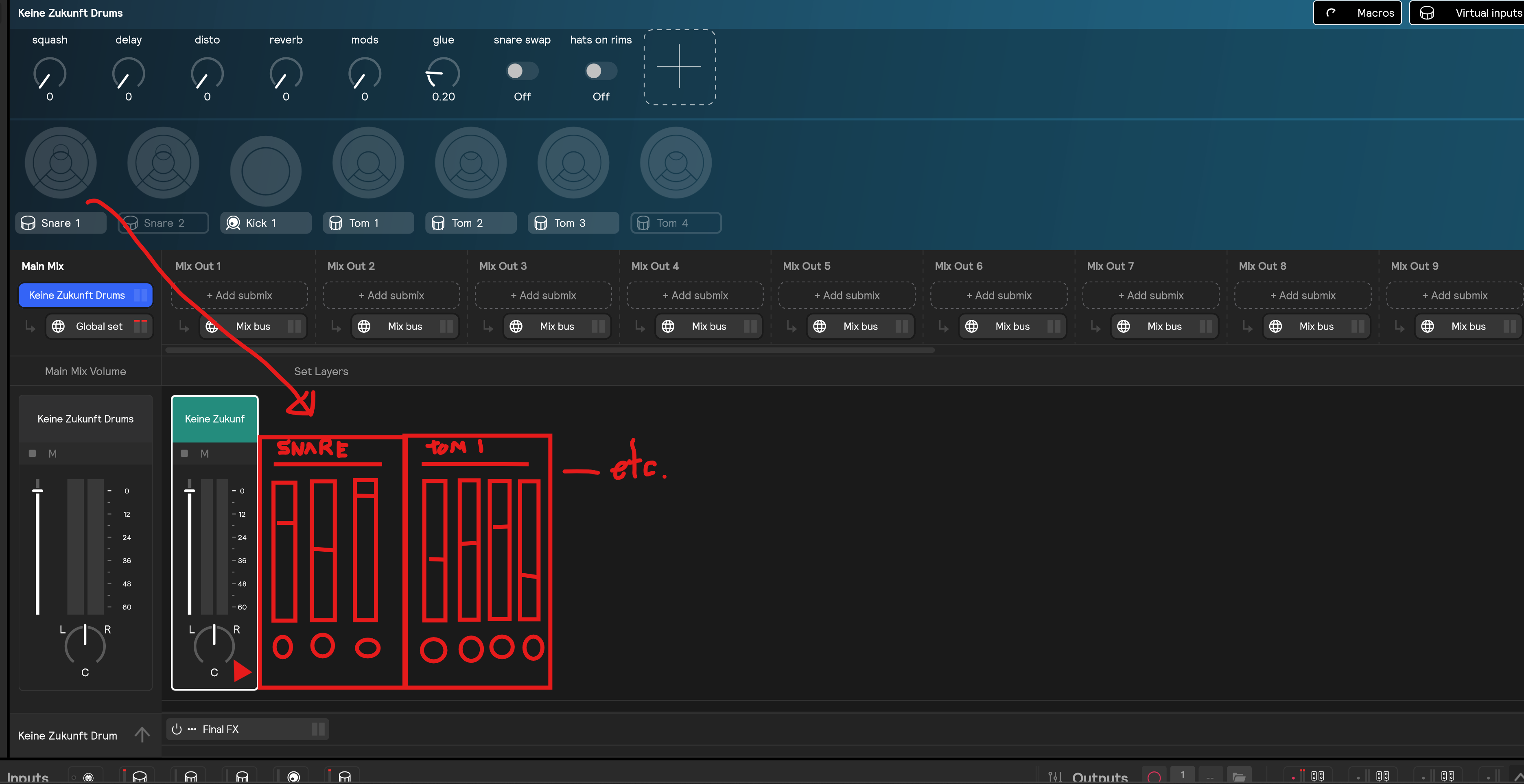 Many of the presets have all of the drums grouped on a single layer, so to adjust different levels of each zone is really cumbersome to work through the modules and sub-modules. And there is no way to view the levels in comparison with each other simultaneously. This would make it sooo much easier to customize the sounds of preset kits.