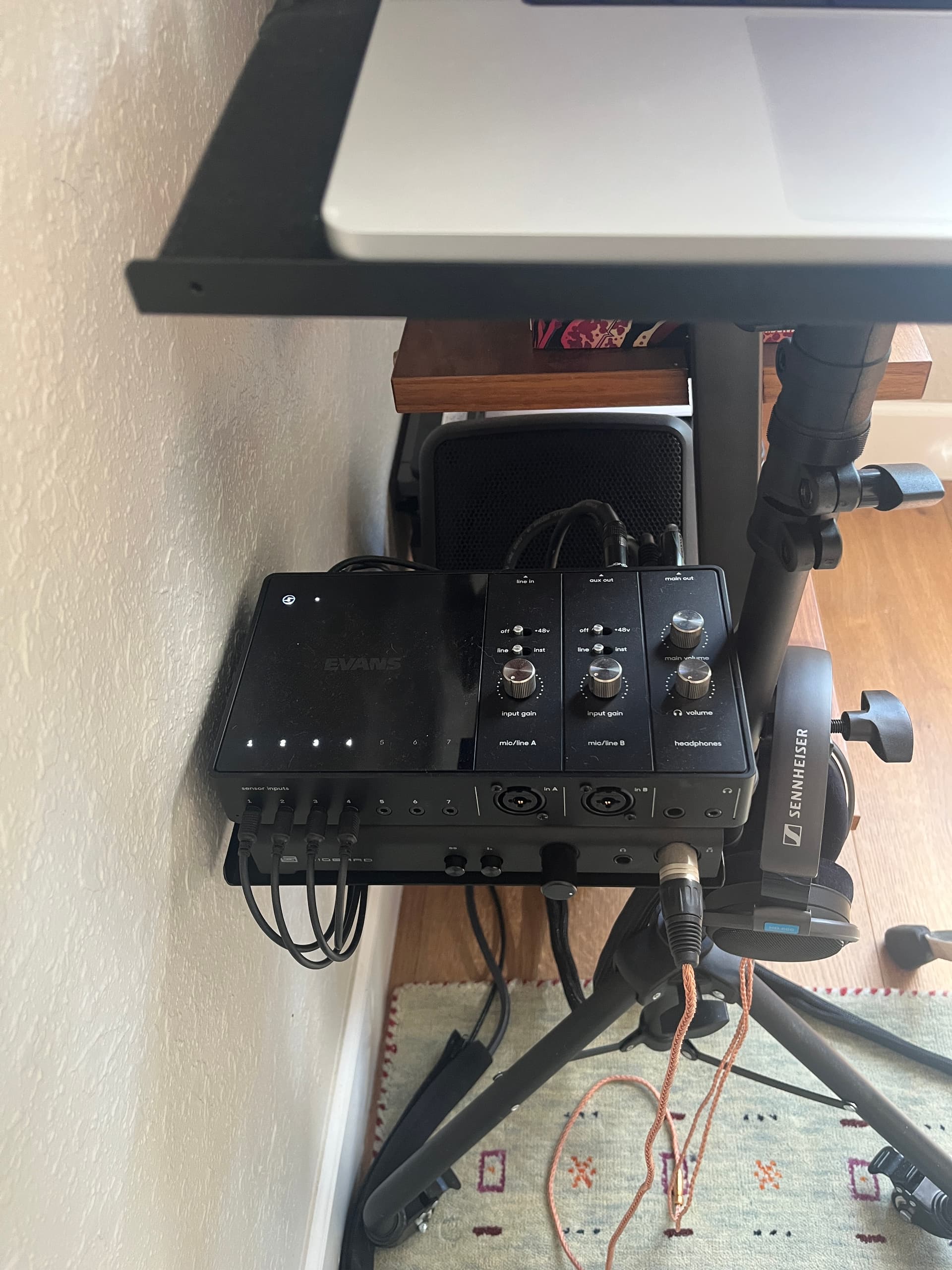 I tried to make it look clean and cable managed it all. Proud of it. Very inviting to jam out.
